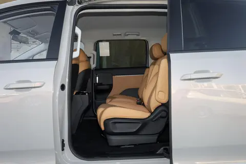 空间表现是核心优势,新车采用2+2+3式7座布局,前排座椅可180度放平,第二排配备双侧扶手,三排座椅支持4/6比例放倒且靠背可调至127度,二排过道最大宽度230毫米,第三排座椅坐垫长1222毫米、宽490毫米,保障乘坐舒适性。第三排座椅翻折后,后备厢最大容积可达1202升,尾门开口最长1164毫米,满足装载需求。