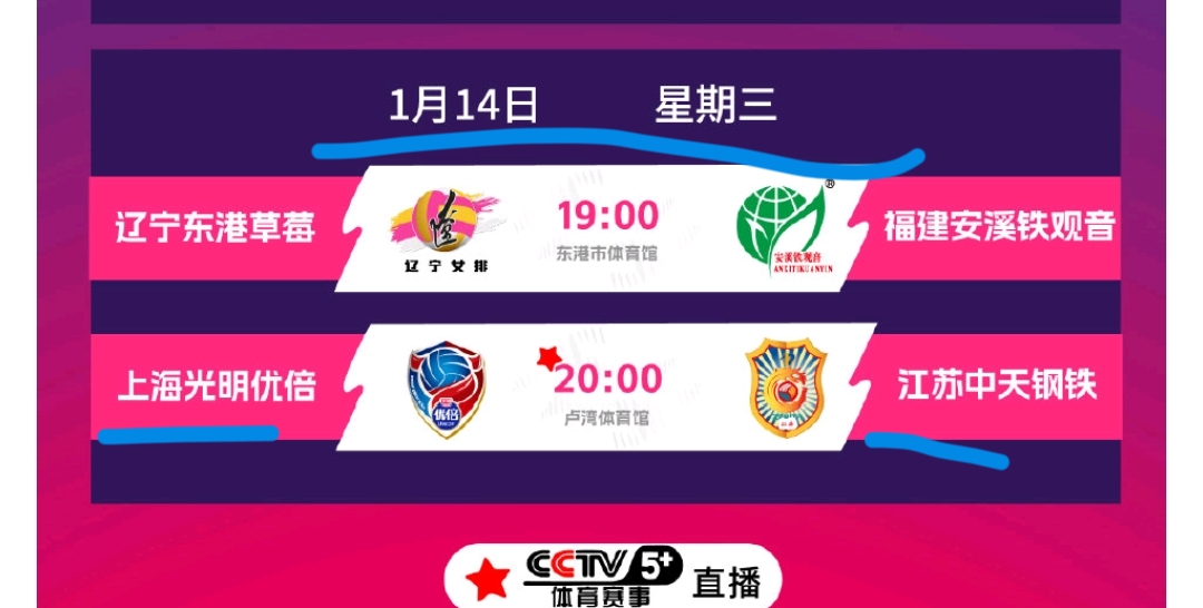 天涯体育排球讯 北京时间1月14号消息 今天是星期三,排超联赛第九轮比赛继续进行。