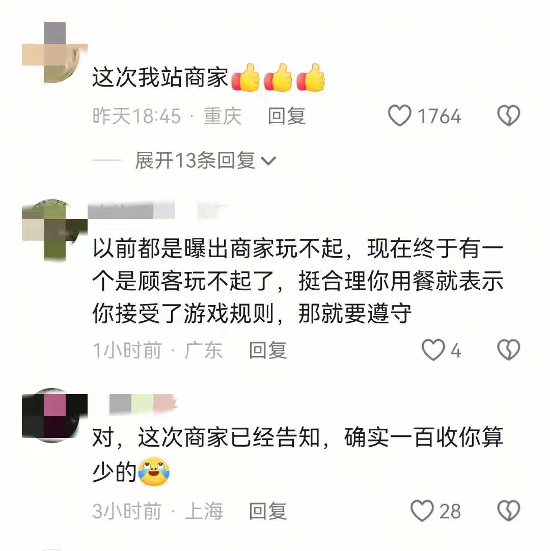 这事儿在网上也引起了热议,网友们大多都站商家这边。大家都觉得,商家已经明确告知了规则,顾客去用餐就表示接受了规则,违反了扣钱那是合理的。还有网友说,一般商家也不会真的扣押金,能让扣的也是过分浪费了