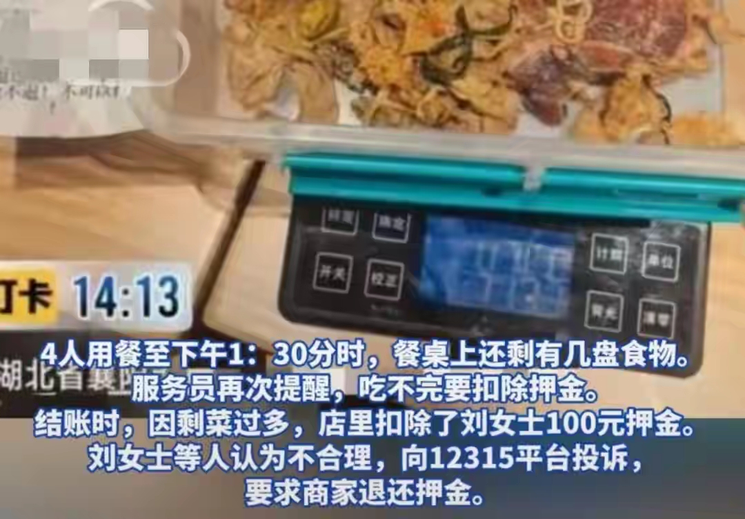 核查完所有情况后,市场监管部门给出了处理结论,驳回了刘女士的投诉,明确表示她和朋友存在食品浪费行为,餐厅扣押金的做法完全符合规则。