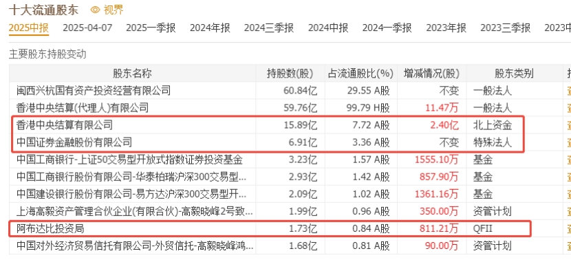 机构动态:二季度机构持股数402家,较一季度增加379家,合计持股2.63亿股,加仓6745万股。前十大流通股东中,国家队证金公司重仓1.04亿股;北上资金加仓2539万股,重仓6858万股;四大沪深300ETF加仓538万股,累计重仓4969万股。