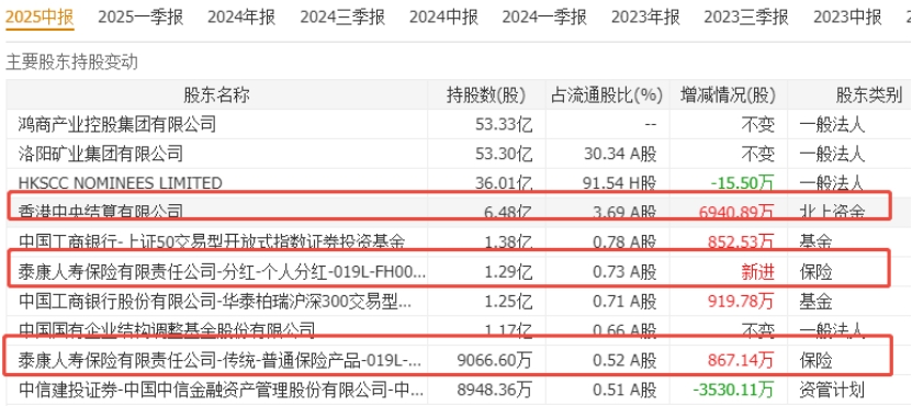 机构动态:前十大流通股东中,北上资金重仓6.48亿股,加仓6940万股;泰康人寿分红险新进1.29亿股;泰康人寿普通保险加仓867万股,重仓9066万股。