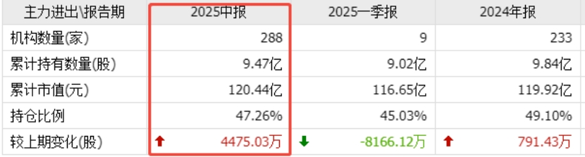 机构动态:二季度持股机构数288家,较一季度增加279家,合计持股9.47亿股,加仓4475万股。