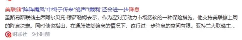与此同时,美联储在9月17日重启降息,将联邦基金利率目标区间下调25个基点到4.00%至4.25%之间。这是美联储2025年第一次降息,也是继2024年三次降息后再次降息。