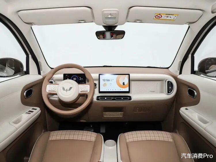 全新五菱宏光MINIEV内饰同样焕然一新,中控台线条更加规整,使用了液晶表盘+悬浮屏造型+怀挡设计,配合双辐式多功能方向盘、双拼的内饰配色,整体看起来确实更加简约、时尚且好看。