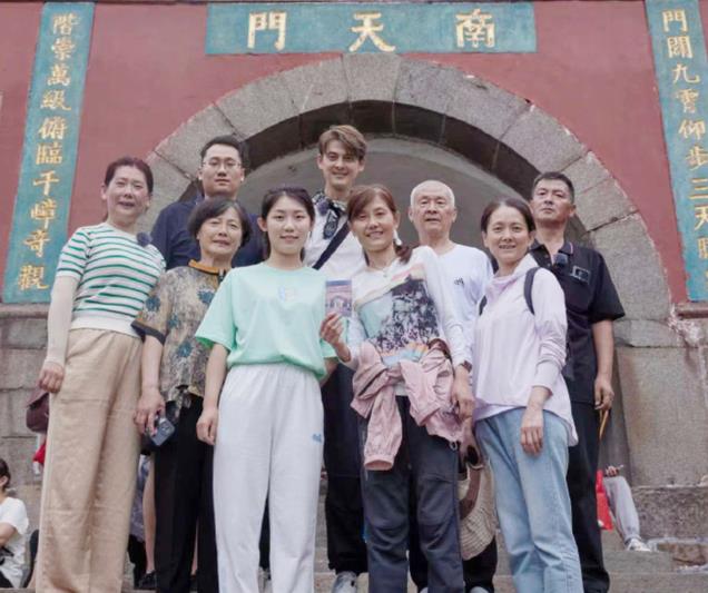 寻亲成功后,郭品超和亲人一起登上泰山南天门。
