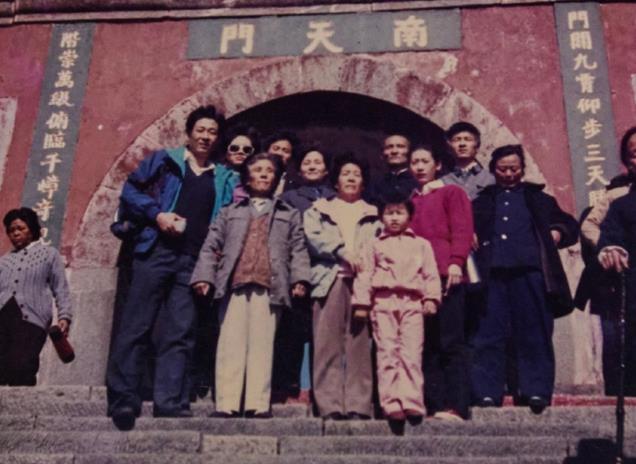 带着1989年奶奶回大陆探亲时与亲人在南天门合影的照片。