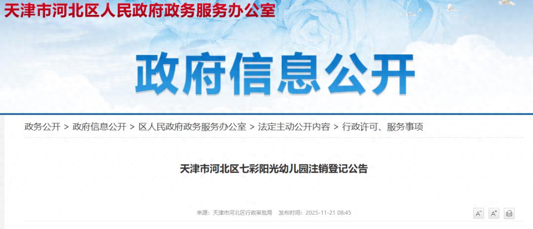 天津市河北区七彩阳光幼儿园住所:天津市河北区月牙河琴江公寓8号楼前平房法定代表人:郑宝珠统一社会信用代码:52120105061240606C注销时间:2025年11月19日注销原因:无法按照章程规定的宗旨继续开展活动。证书和印章废止,特此公告。
