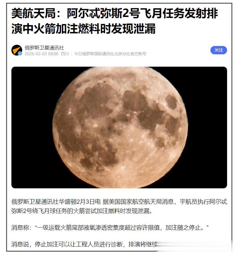 美国想在载人登月这件事上抢在中国前面,这个意图太明显了。NASA自己也知道时间紧任务重,原来计划2027年就登月,结果现在发现根本来不及,2月份刚改了方案,把登月任务推到2028年去了。但是为了给外界一个交代,阿尔忒弥斯Ⅱ号这个载人绕月必须先飞,哪怕隔热罩不换、燃料泄漏没彻底解决、氦气阀门刚修好,也得先飞上去再说。