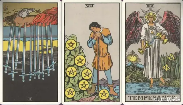 牌:宝剑十- 星币七+ 节制+