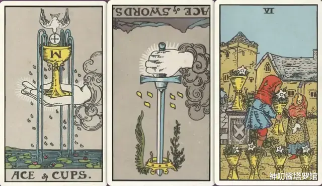 牌:圣杯ace+ 宝剑ace- 圣杯六+