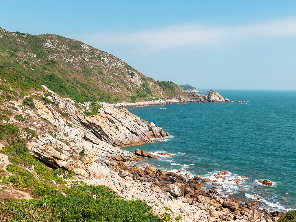 为避开拥堵,我们清晨七点便从市区出发,自驾一个半小时抵达东涌起点。踩上细软的沙滩时,海风裹挟着咸湿气息扑面而来,瞬间吹散了残留的困意。穿好防滑徒步鞋、戴好手套,我们跟着人群踏上征程,开篇就是一段85度的陡坡,手脚并用攀爬的瞬间,所有职场伪装都被抛在脑后。
