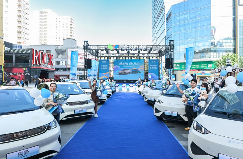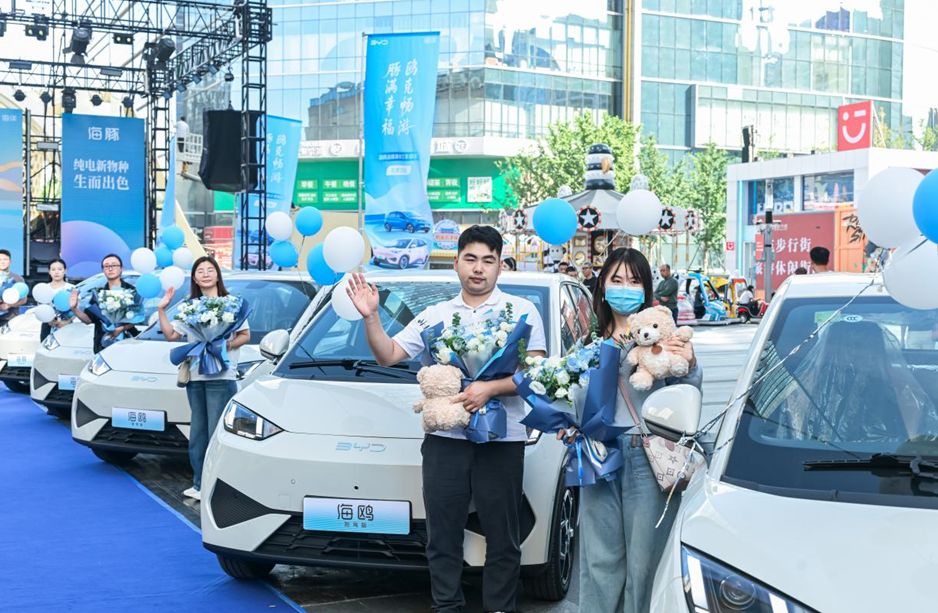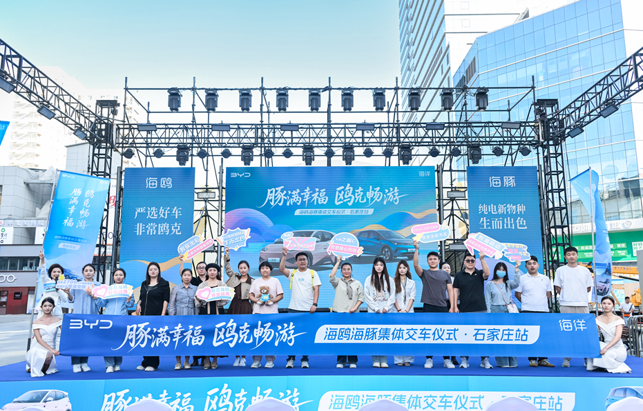 2025 年9月28日,比亚迪海豚、海鸥这两款海洋双子星,在石家庄湾里庙步行街举办了盛大的交车仪式。 “豚满幸福 欧克畅