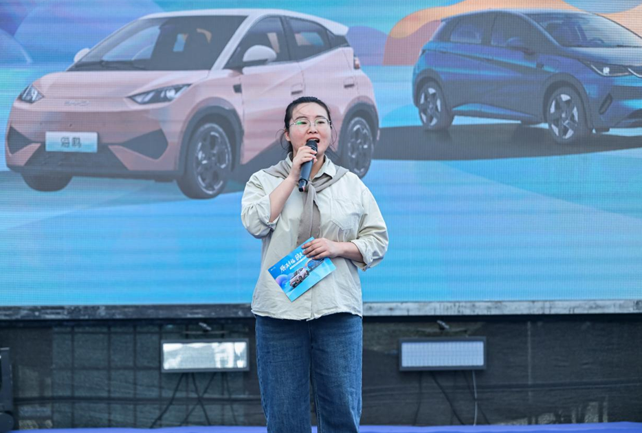 伴随着演出的结束,本次活动的主角,即将拿到钥匙的准车主们上台,分享了自己选车和购车的过程,同时对于比亚迪海豚这款车给予了极高的评价。