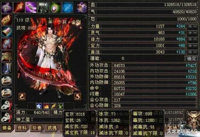 少林,真的就是目前的版本答案。今天给大家介绍的,就是来自【紫气东来】服务器的第一少林:血量132万,蓝量4万,外功攻击8