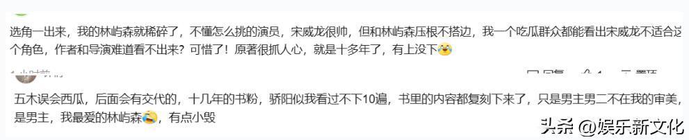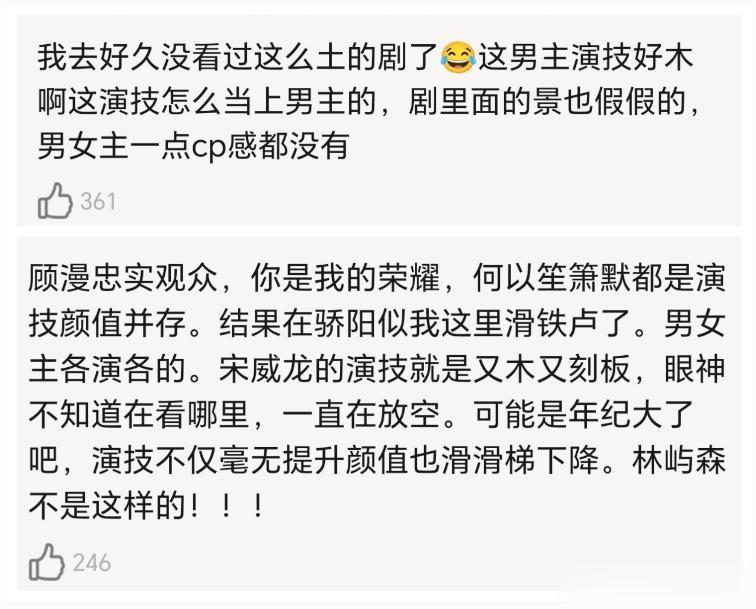 说实在的,宋威龙是帅的,但是目前来看,他的表演过于冷静,没有表现出内心细腻的感情变化。播出两天后,有网友表示,宋威龙根本就不符合林屿森这个角色,演技又木又刻板,有点毁这个角色。不过小编看到后面预告,两个人误会解除,剧情变甜了,雪中解围的名场面就要来了,林屿森脸上笑容多了,整个人也生动了许多,还是蛮期待后面剧情的。你有在追这部剧吗?