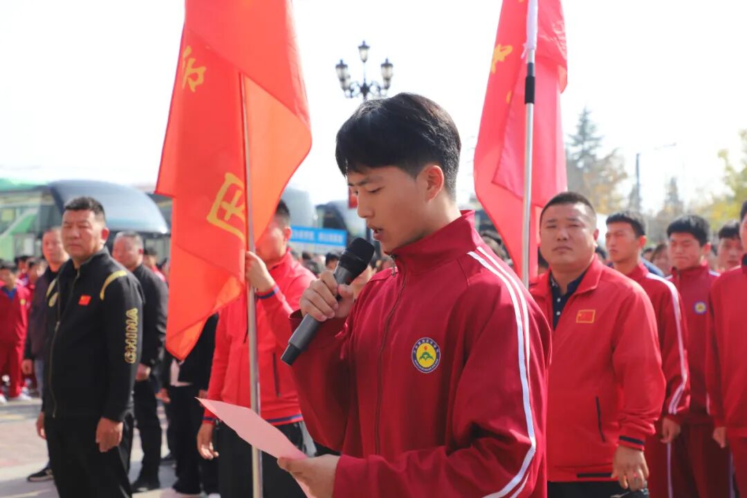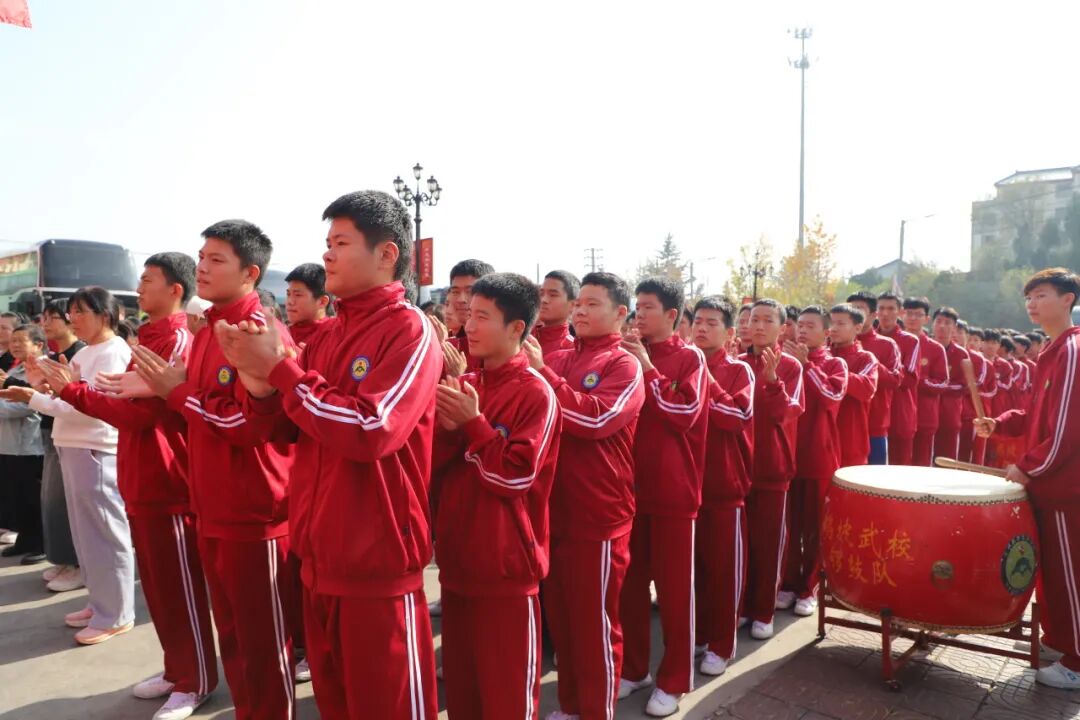 欢迎仪式在温馨而热烈的氛围中开始。负责本次演出任务的执行总指挥赵跃主任发表感言。他回顾了数月来紧张的排练历程,从酷暑到深秋,从白天到夜晚,从学校训练场到训练基地,再到奥体中心的舞台,参演师生顶高温,冒酷暑,迎暴雨,抗台风,克服了重重困难,挥洒了无数汗水。他动情地说到:“舞台上每一分钟的精彩绽放,都凝聚着台下千万次的反复打磨。是鹅坡武校总校会同佛山校区黄飞鸿文武学校整个演出团队坚韧不拔的意志,共同铸就了开幕式现场震撼人心的视听盛宴,赢得了导演组和广大观众的一致好评,向全社会展示了鹅坡人卓越的风采和团结一心的力量!”赵主任的感言,道出了所有参演师生的心声,引发了阵阵共鸣的掌声。