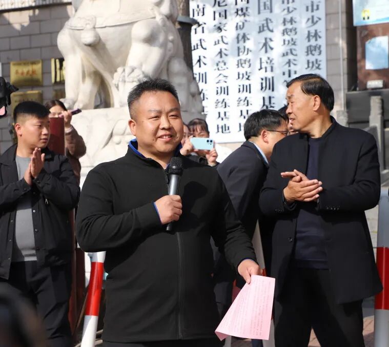 鹅坡武校武宣办主任许正伟致欢迎词,他向所有载誉归来的师生表示最热烈的欢迎和最诚挚的祝贺!