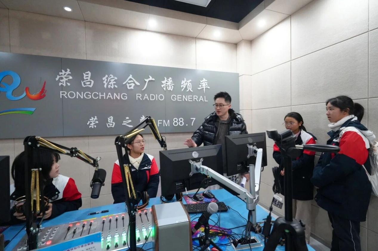 1月12日下午,西南大学附属中学荣昌实验学校“西附之声”广播站学子走进荣昌区融媒体中心,开展沉浸式生涯教育实践活动。此次活动打破校园边界,让学子在真实职业场景中感知媒体行业魅力,为学校生涯教育注入鲜活实践动能。