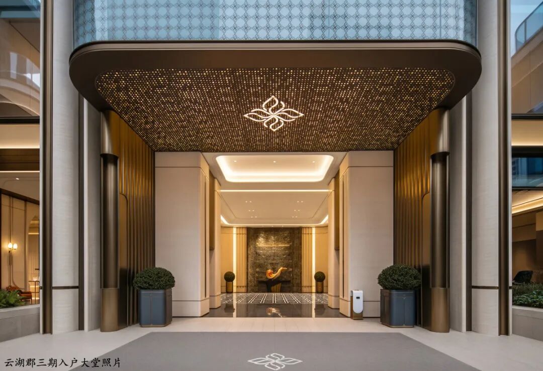 约300米超长归家界面,面宽约80米的奢阔大门,精选的石材和金属线条,让整个归家空间显得高端大气。