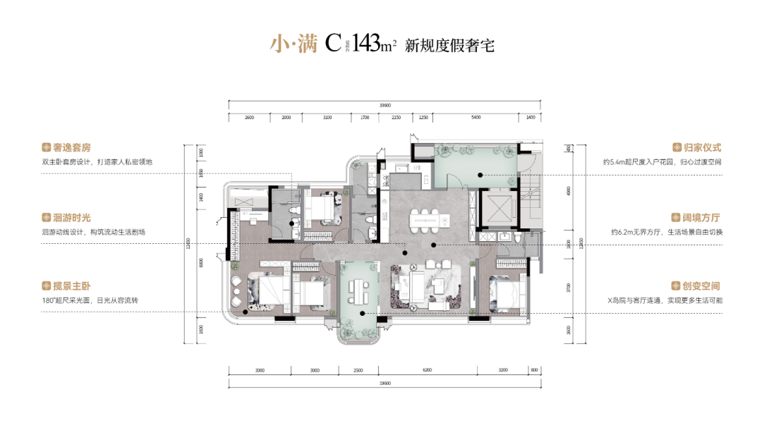 比如建面约143㎡的户型,拥有四大亮点设计,舒适度远超市面上同面积段产品。