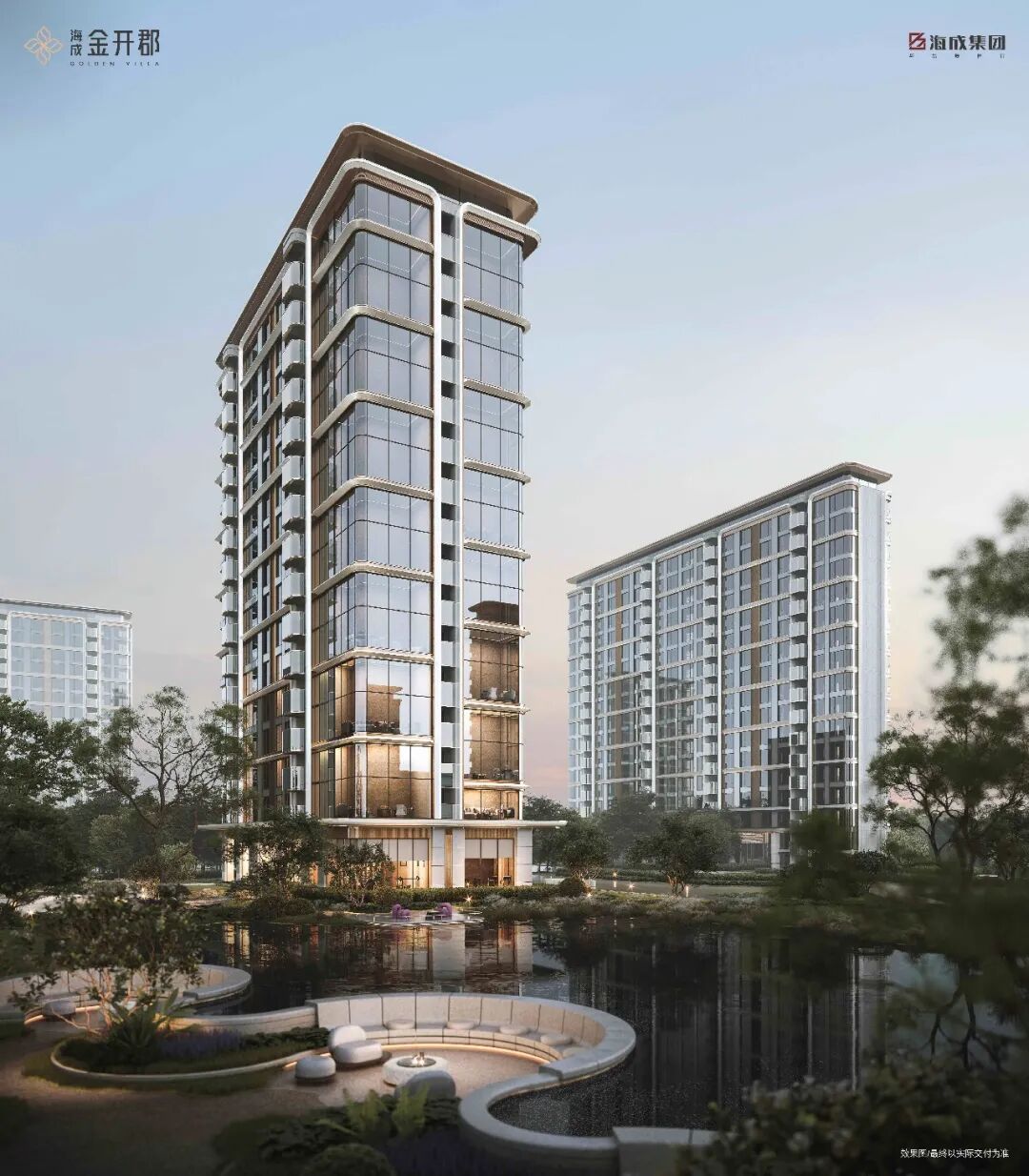 金开郡打造了约4000㎡无界生态湖区,这是海成“郡系”作品中最大的湖,蜿蜒的湖岸线最大化湖景资源,营造出24h沉浸式湖心度假氛围。