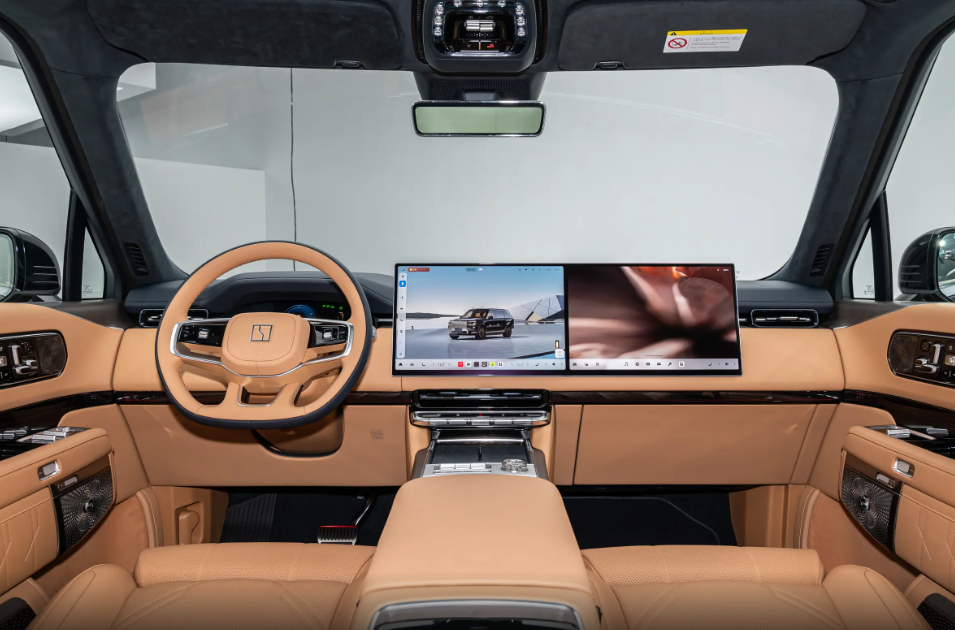 相比于外观设计的高调,极氪9X的内饰设计布局看起来反而居家务实一些,因为部分消费者表示它的内饰设计配不上外观,事实真的如此吗?坐进车内,最明显的感受就是整车质感真的很不错,内饰用料和做工相当讲究,到处都是软面真皮,比市面上大部分真皮材质更加柔软。原厂配备中控屏,有需要的用户还可以选装副驾娱乐屏,与中控屏组成双联屏设计,不仅视觉效果更突出,而且搭载的功能更丰富。虽说有大屏的存在,车内依旧保留大量物理按键,关于这点必须给个好评,坐进车内不至于给人手足无措的感觉。