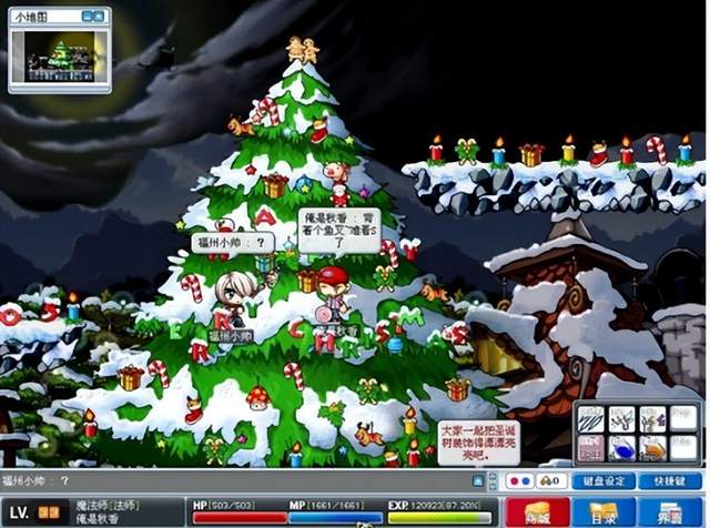 每年圣诞节,圣诞村会有一棵巨大的圣诞树,你可以往上面挂装备。有人挂垃圾,有人挂极品,还有人挂表白信——“XX,我喜欢你!”旁边围了一群人看热闹。最刺激的是,有人把最好的装备挂上去炫富,然后大家就在下面猜“他会不会拿不回来?”