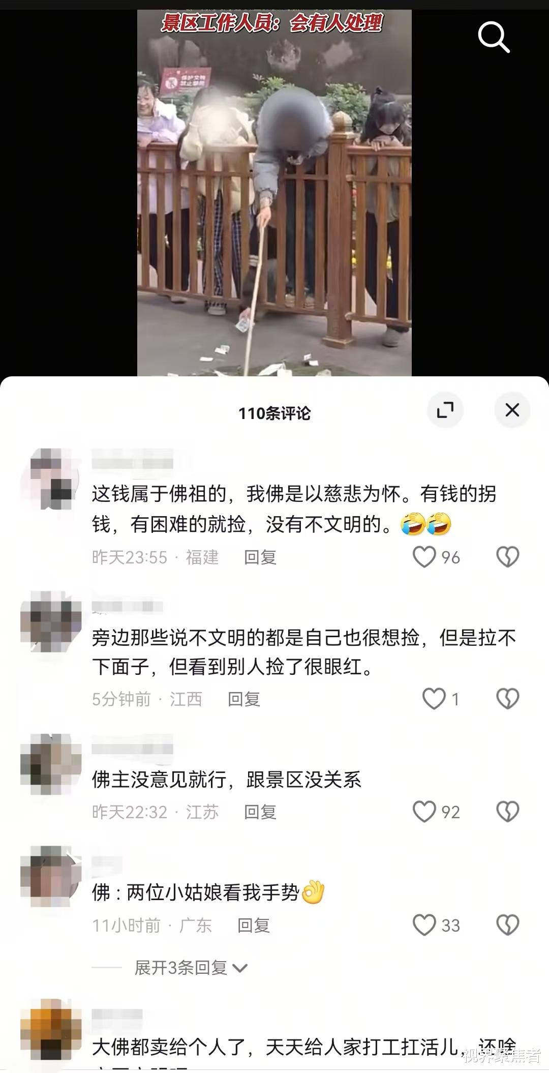 然而,另一些网友则对这种行为表示谴责,认为这是不文明的表现。他们指出,祈福钱是游客们怀着虔诚之心投掷的,用于表达对佛祖的敬意和自身的祈愿,扒走这些钱是对他人信仰的不尊重。景区是公共场合,这种行为破坏了公共秩序和景区的和谐氛围。从社会公德层面看,随意拿走他人祈福的钱财,不符合文明旅游的要求,也违背了基本的道德规范。