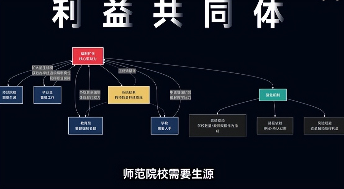 地方政府也乐于建学校,招老师,于是一个牢固的利益共同体形成了,师范院校需要生源来维持运转,教育局需要编制名额来体现工作成果,学校需要人手来应对越来越多的学生,毕业生则需要一份稳定的工作。