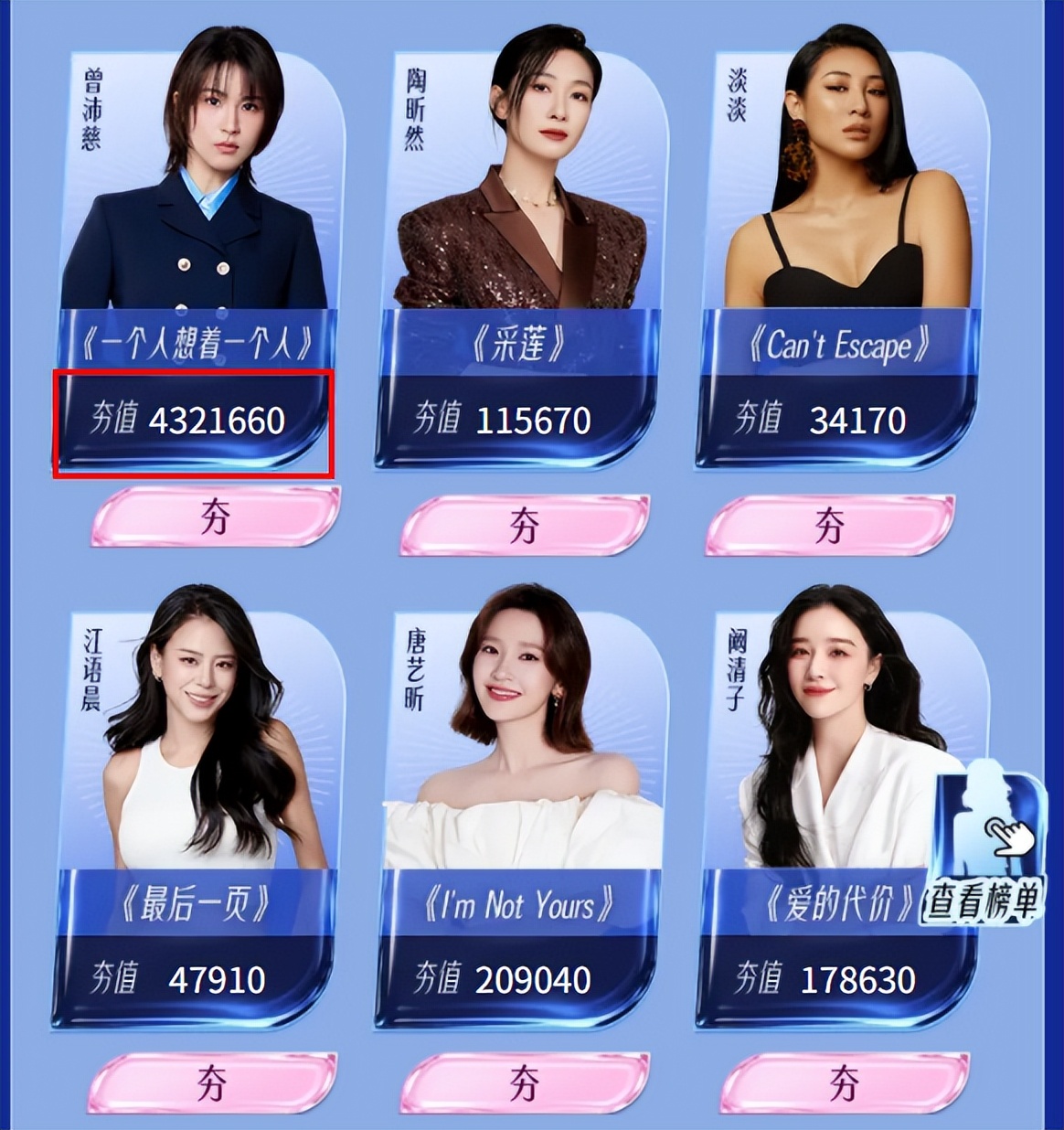 《乘风2026》采用的是直播的方式,所以节目组提前公布姐姐们的初舞台演唱歌曲,并开启打投,当姐姐们还没有登台表演的时候,曾沛慈的票数就以断层的优势遥遥领先,最终获得400万+票。
