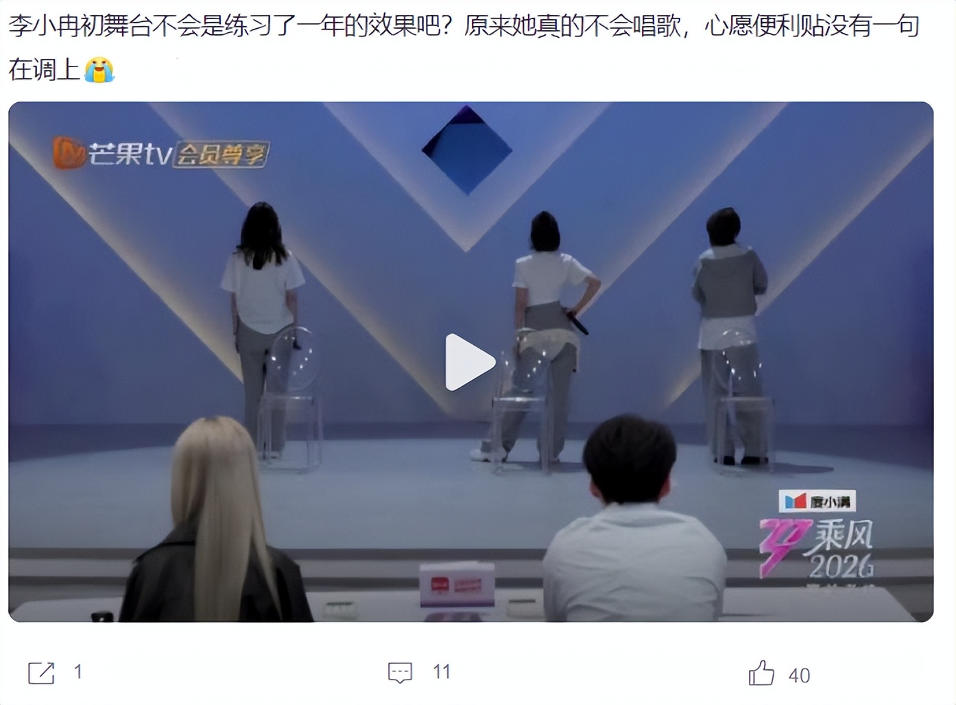 特别是第一轮舞台公演小考,本以为李小冉跑调会被全网嘲,结果却意外圈一批粉丝,因为这直接证明,李小冉初舞台真的用心了。