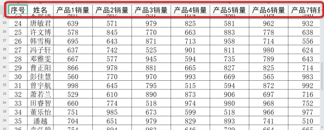 向下滚动工作表,你会发现第一行标题始终显示在顶端,不会随着滚动而消失。