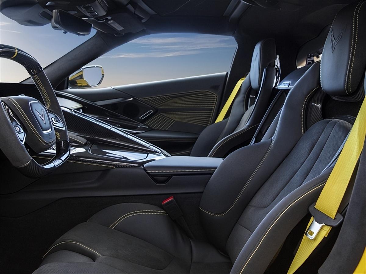 座舱内设计同样堪称炸裂,碳纤维装饰的方向盘、黄色缝线、赛车风格的桶形座椅、ZR1金属铭牌等无不彰显了其充沛的能量。