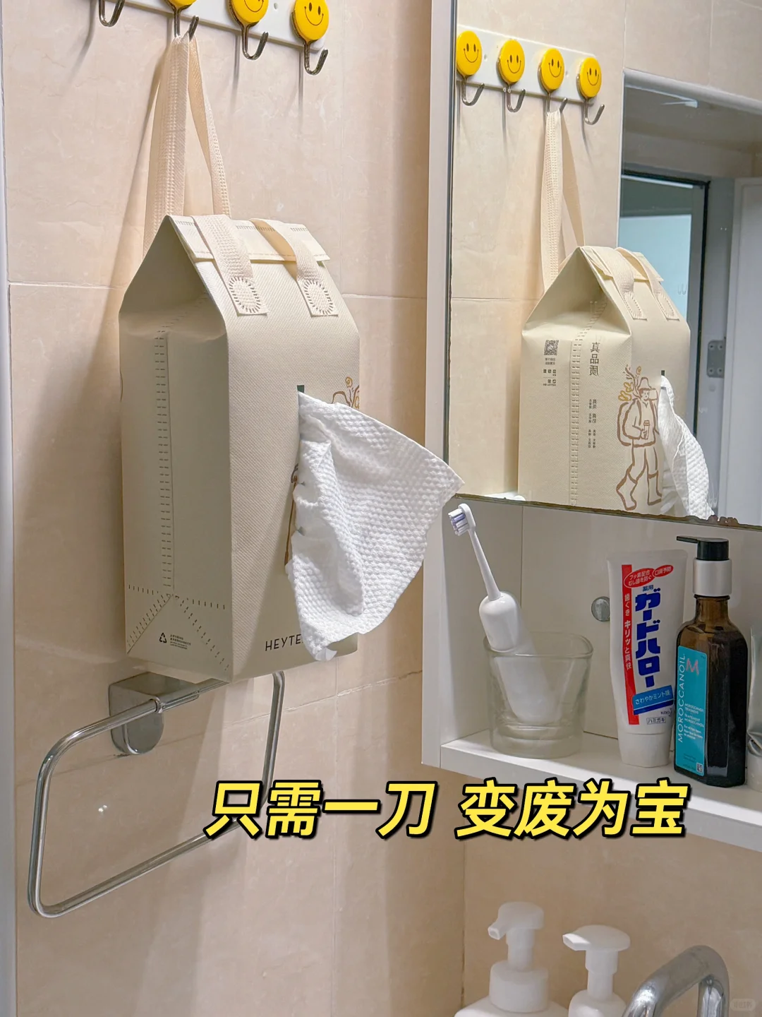 使用洗脸巾比较方便,不需要反复清洗,而且更加干净卫生,洗脸巾拿取不方便,可以叫他直接挂起来收纳一个奶茶袋子就搞定。