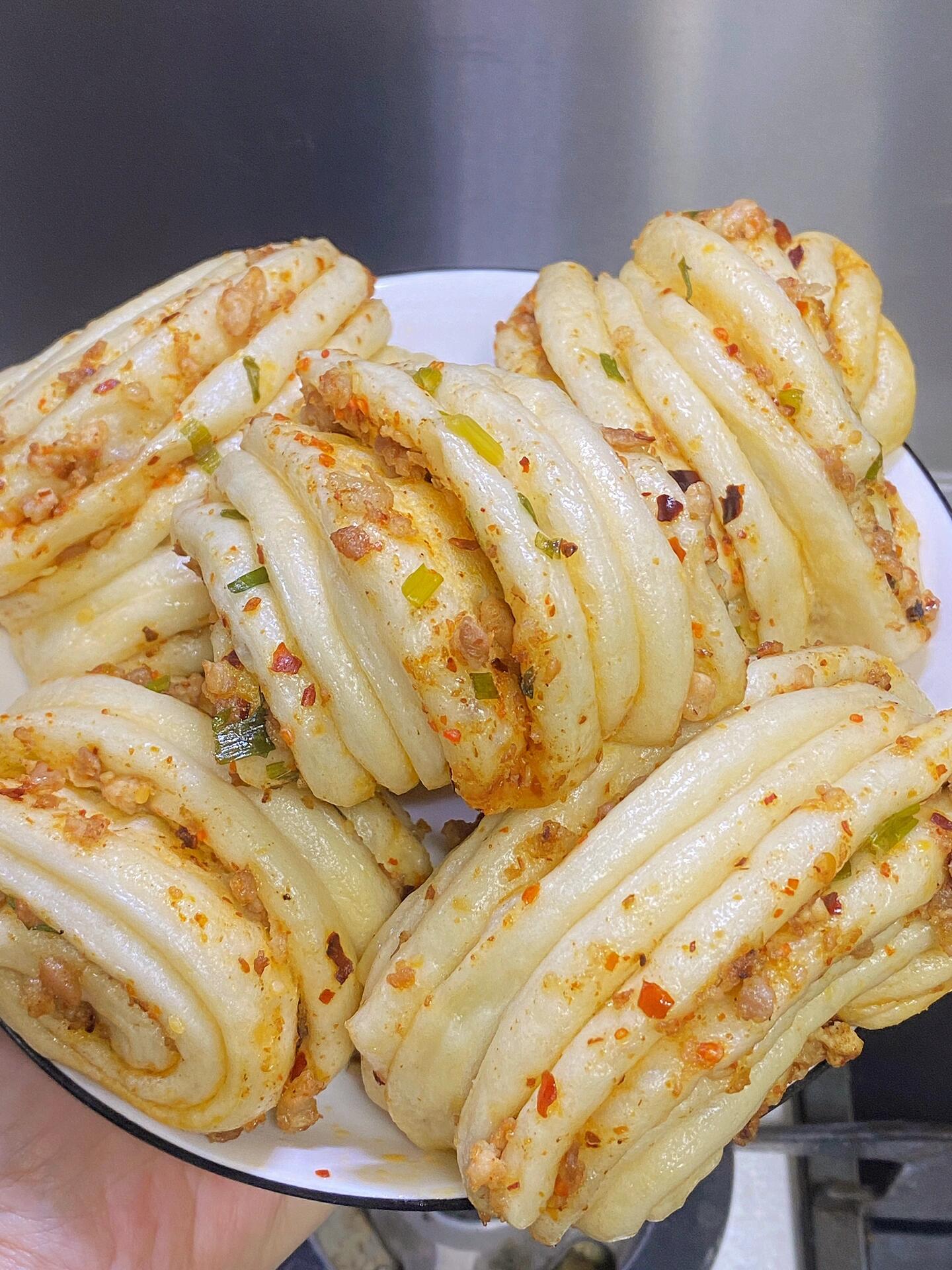 十分钟教你解锁香辣肉末花卷,香香软软,好吃到停不下来!