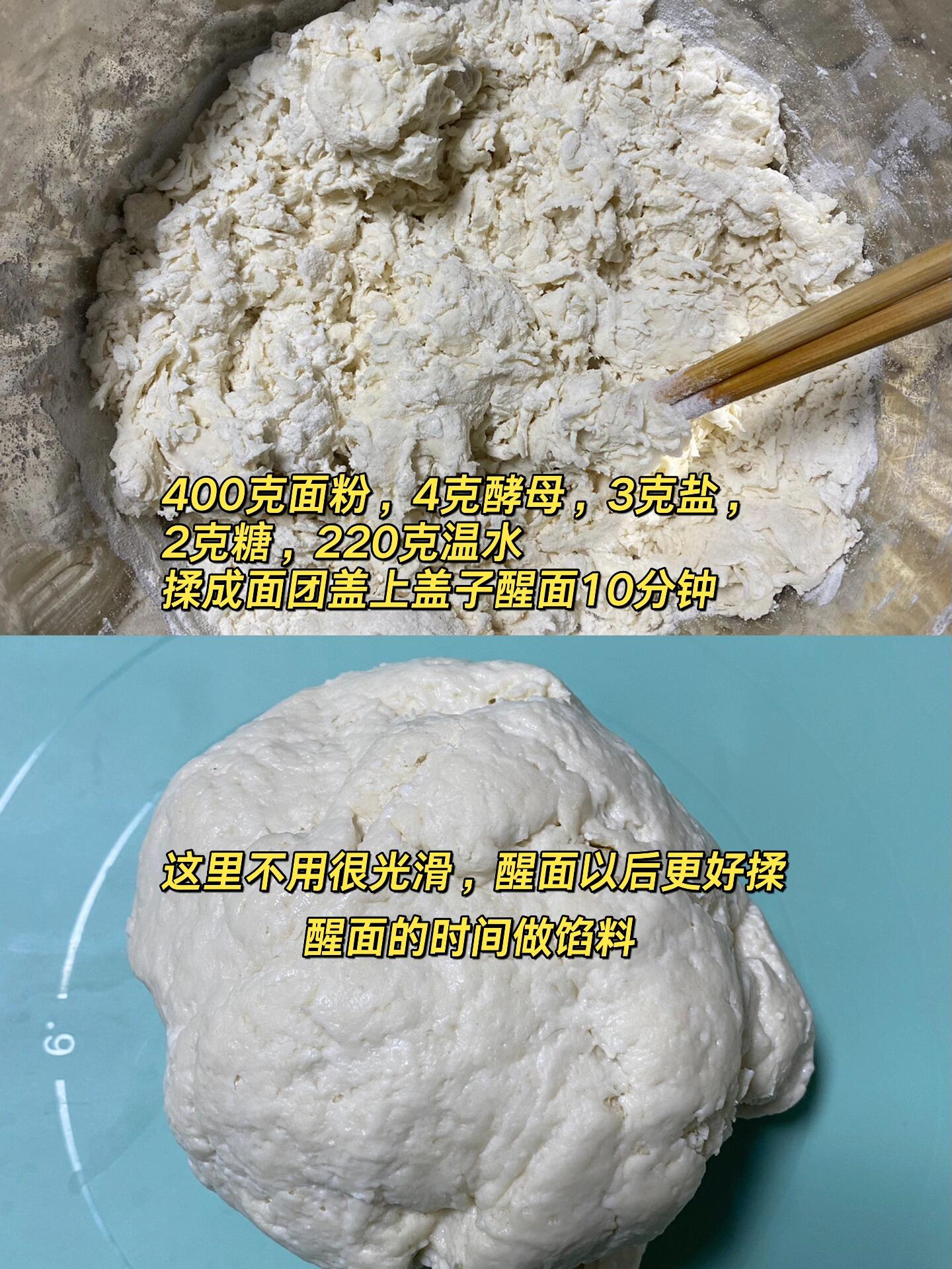 把面粉、酵母、盐和糖放进一个大碗里,慢慢倒入温水,一边倒一边用筷子搅拌,直到面粉变成絮状。然后,用手把絮状面粉揉成一个光滑的面团。揉面的时候,要有耐心,多揉一会儿,这样面团才会更有韧性。揉好后,盖上保鲜膜,让面团醒发10分钟。这10分钟可不能浪费,我们可以利用这段时间来调制肉馅。