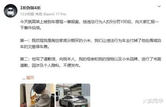 车里坐着老人和宠物,小米.车主全程克制,没有反击,而是.选择下高架后报警处.理。