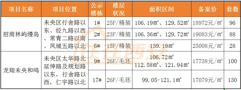 2月5日,西安未央区团结片区招商林屿缦岛、龙翔未央和鸣两个纯新盘首次取价,共计442套房源公示一房一价!