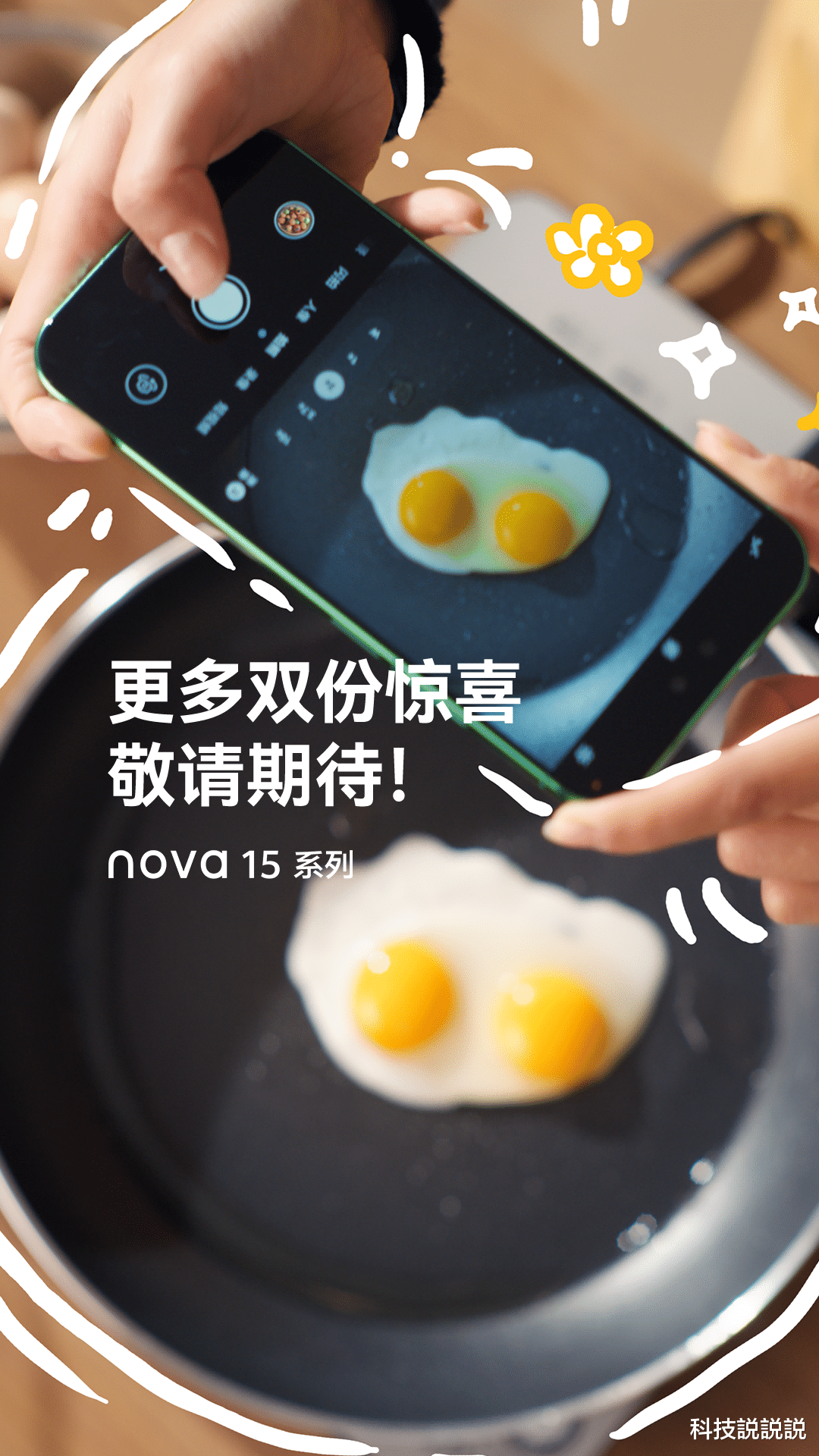 视频中,“双份”成为了贯穿始终的线索:两只相遇的小狗、双黄蛋、两人的邂逅。结合何刚总那句“反正准出片,更多双份惊喜”的旁白,以及此前文案里的“「枫」头正劲”,一个关于影像配置的大胆猜想浮出水面: nova 15系列或将在前置与后置镜头上,同时搭载红枫原色影像系统。
