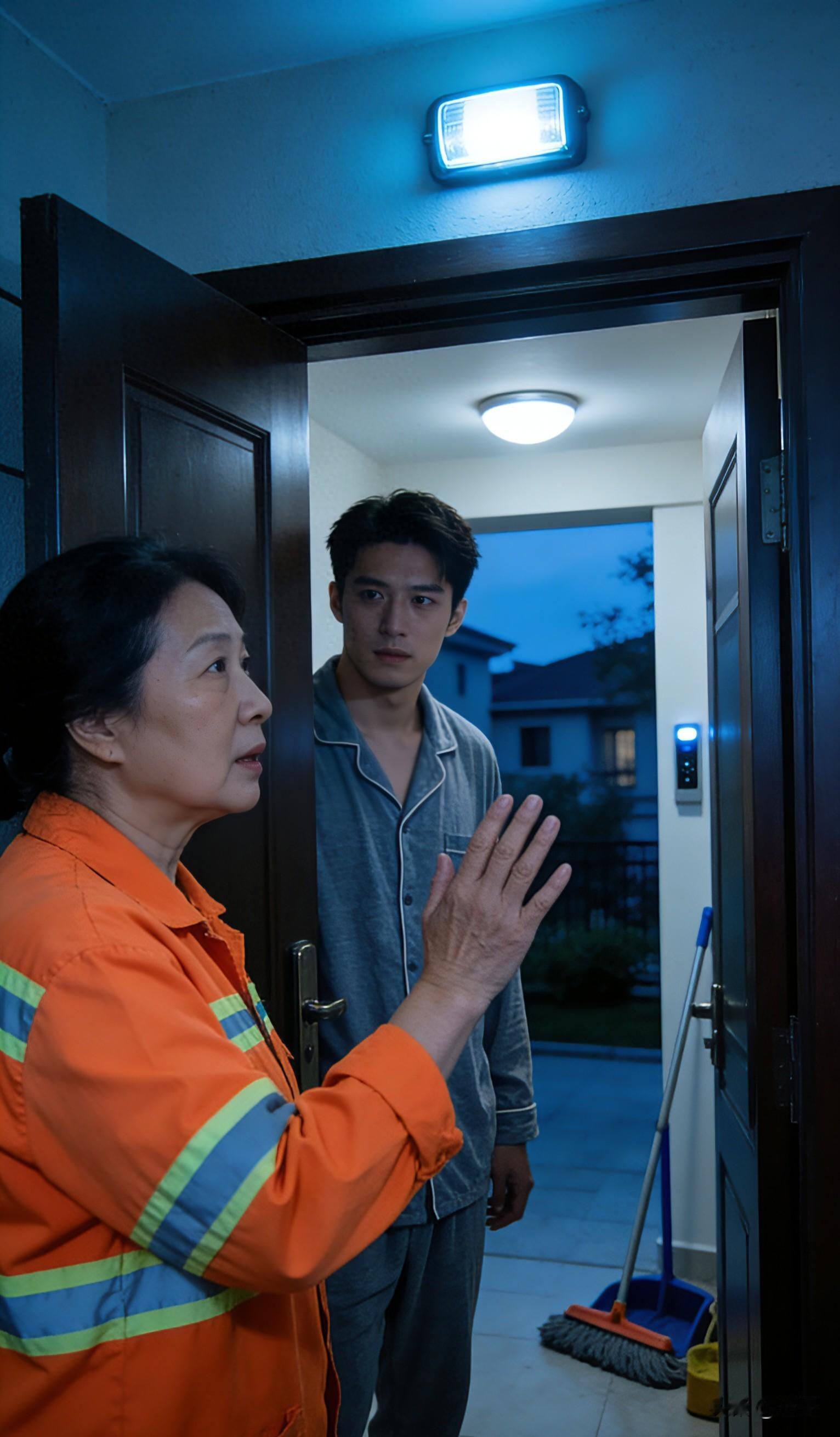 我迷迷糊糊爬起来,从猫眼往外看,是小区清洁工周阿姨。她穿着那件褪色的蓝色工作服,头发被晨雾打湿了,站在门口搓着手,一脸焦急。