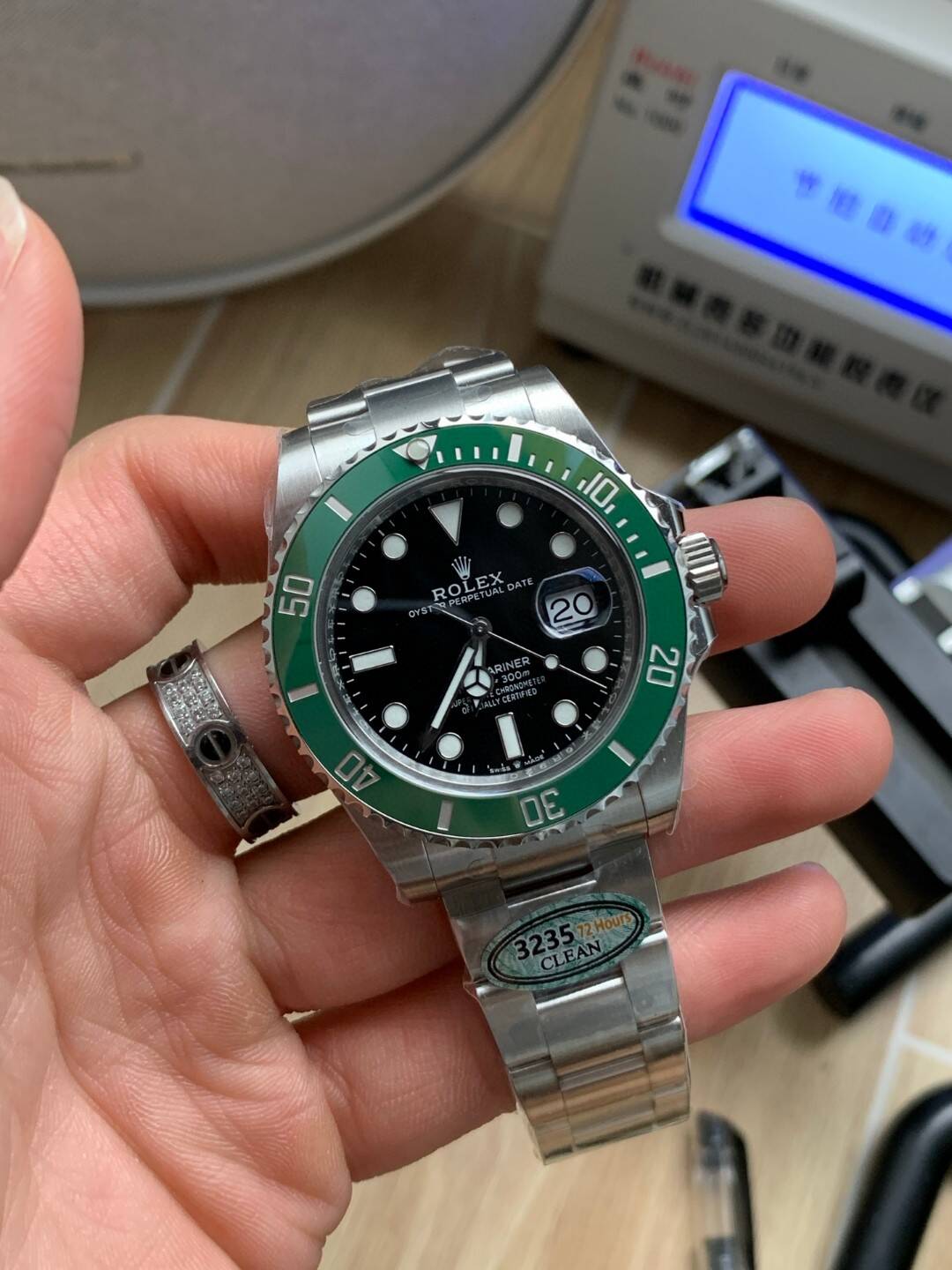 1.**壳型**:41mm×11mm的经典比例,316L精钢历经“抛光+拉丝”的精湛打磨,六个轮齿圈口圆润如玉,正面凝视,真假难辨。