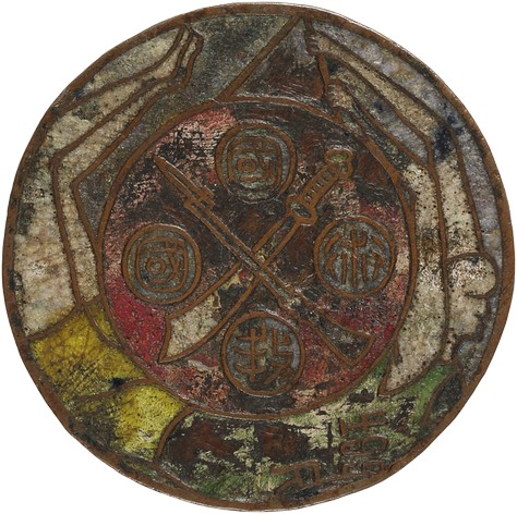 章体正面中心是以红色为底,上有“刀”“枪”组成的图案,有“国术救国”四个圆形篆书字体。在近代国术救国思潮中,国术人士不仅精通武艺,更具备高尚的品德和强烈的爱国情怀,将个人的命运与国家的兴亡紧密相连。其中不乏投身革命、为民族解放事业英勇奋斗的先驱。他们利用武术特长,冲锋陷阵,成为革命队伍中的尖兵;在后方,则通过教授武术,培养民众的尚武精神和自卫能力,为抗日战争提供了有力支持。