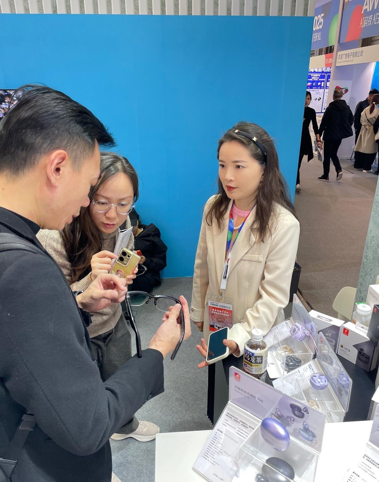 在展区内,最新款的AI眼镜和耳机产品闪亮登场,它们不仅仅是电子消费品,更是为人们的生活带来改变的利器。
