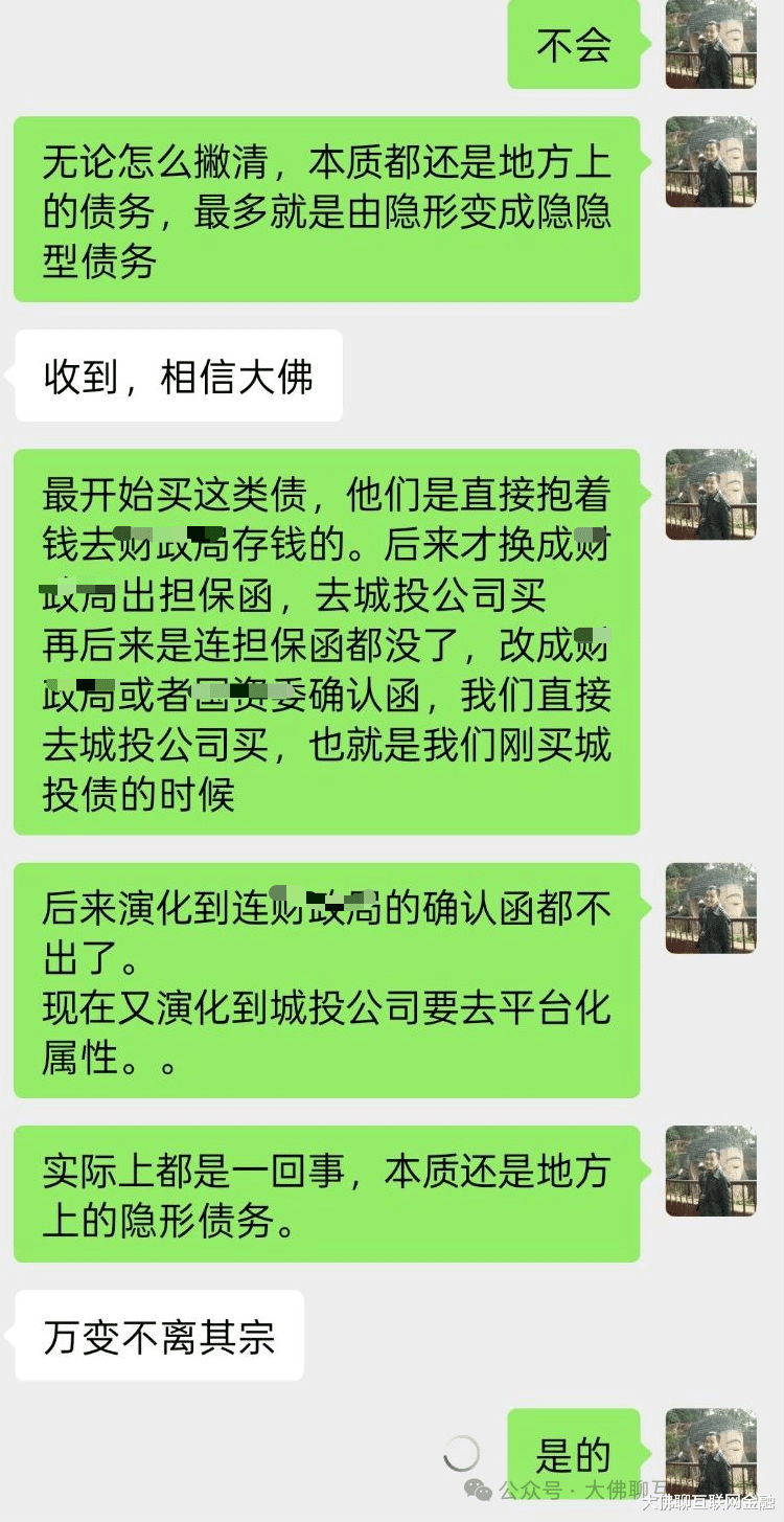 无论怎么撇清,无论融资方式怎么变,本质还是不变,都是地方上的债务、地方上借的钱,最多可能就是从隐性变成隐隐性债务。形式变得更隐蔽,但本质还是那个本质。