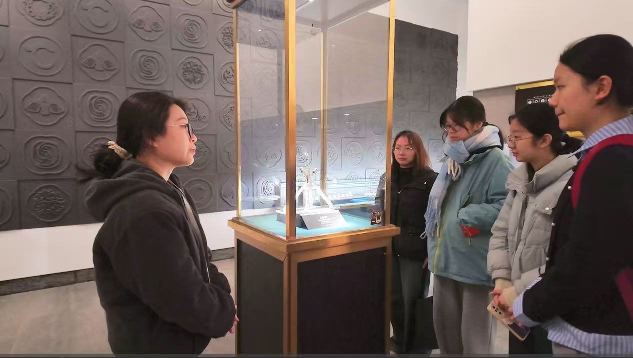 实践队首站抵达雨田古代玉器博物馆,在专业讲解人员的引导下,队员们梳理了三条簪从清代至今的形制演变,深刻体悟到老物件上承载的闽地民俗风情。随后,在福州市博物馆和福建博物院,队员们重点聚焦饰品錾刻工艺,通过对比分析,挖掘三条簪在闽地传统首饰中的跨地域应用规律。