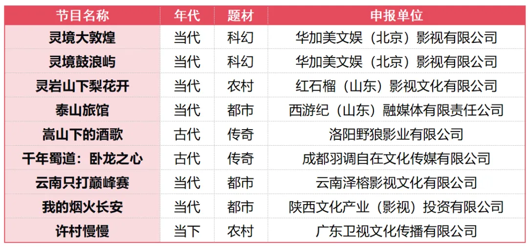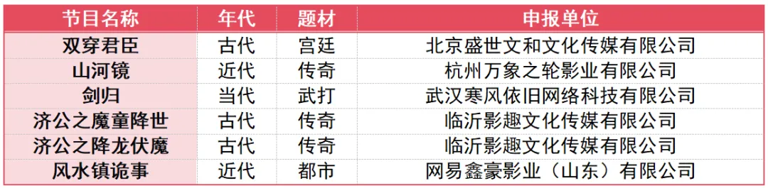 比如,由卡酷传媒备案的《天线宝宝出来玩》,由华策影视备案的《胜意昭华》,由翡翠东方备案的《金宵大厦》。