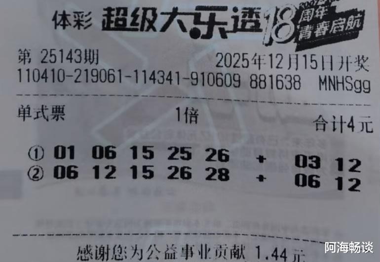 大家好!今天是12月15日,农历十月廿六,星期一。体彩大乐透第25136期开奖即将在今晚拉开帷幕,开奖前的氛围愈发热烈,不少朋友早已分享了自己精心挑选的票面。接下来,就让我们一同欣赏这些精彩的晒票内容,同时也温馨提醒大家,欣赏之余请务必保持理性,量力而行。