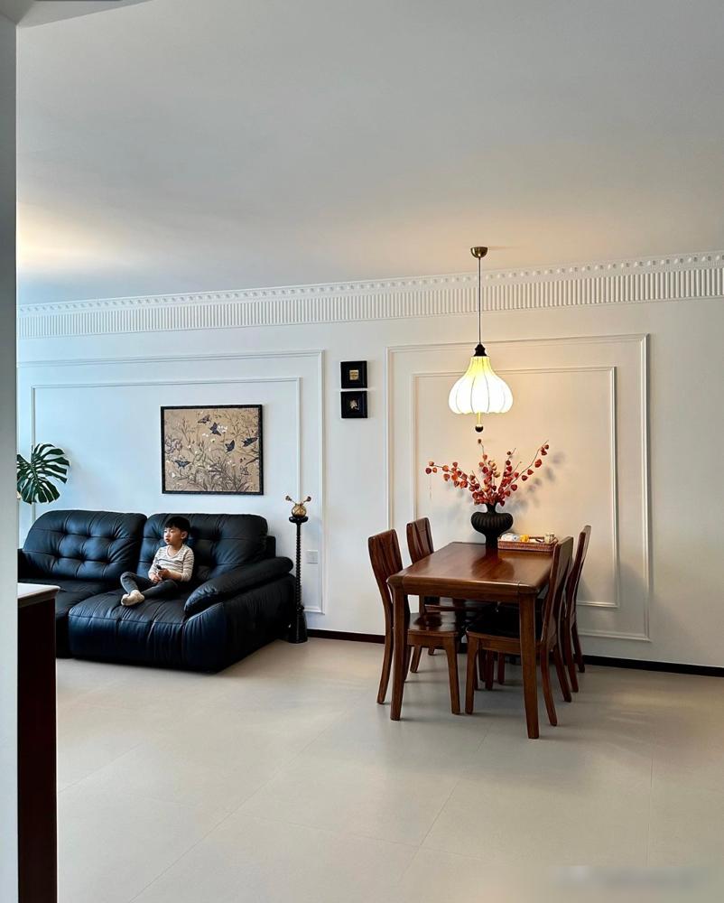 大白墙配石膏线真是绝配!现在好多人喜欢搞岩板背景墙或者木格栅,结果钱花不少还容易过时。人家直接用简单的线条勾勒空间层次,软装搭配深色家具立马出效果。