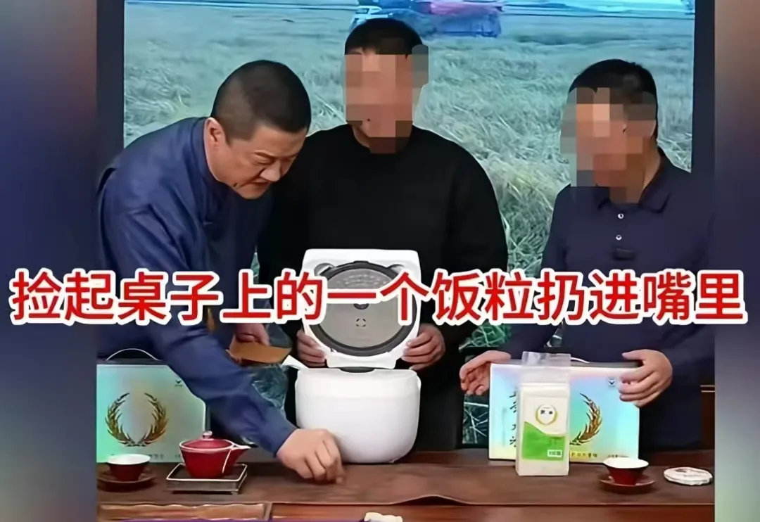 五、捡起一粒米饭在一场带货大米的直播中,李亚鹏用饭勺盛起米饭时,一粒米掉在了桌上。下一秒,他手指捡起那粒饭,放入了自己口中,极其自然。